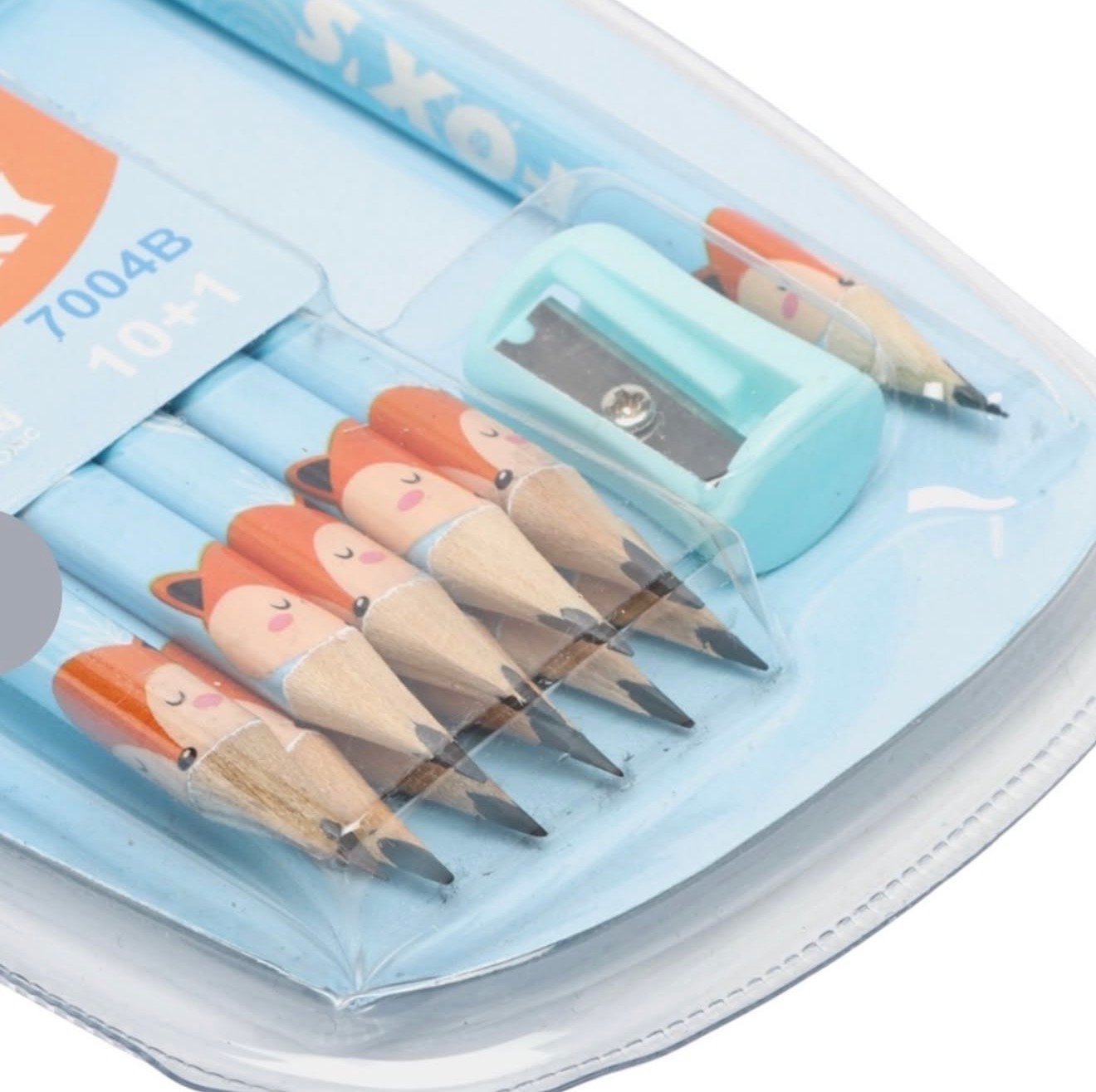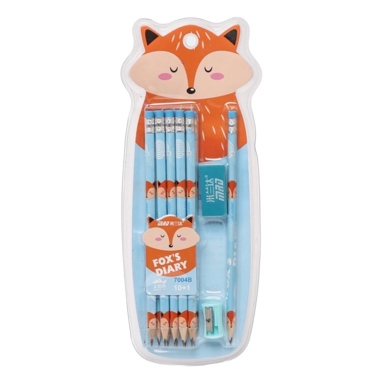 عدد ١١ قلم رصاص فاخر مع ممحاة وبراية بعلبة على شكل ثعلب لطيف